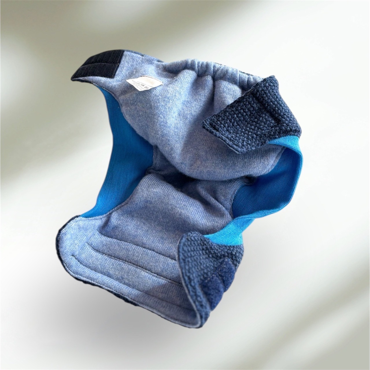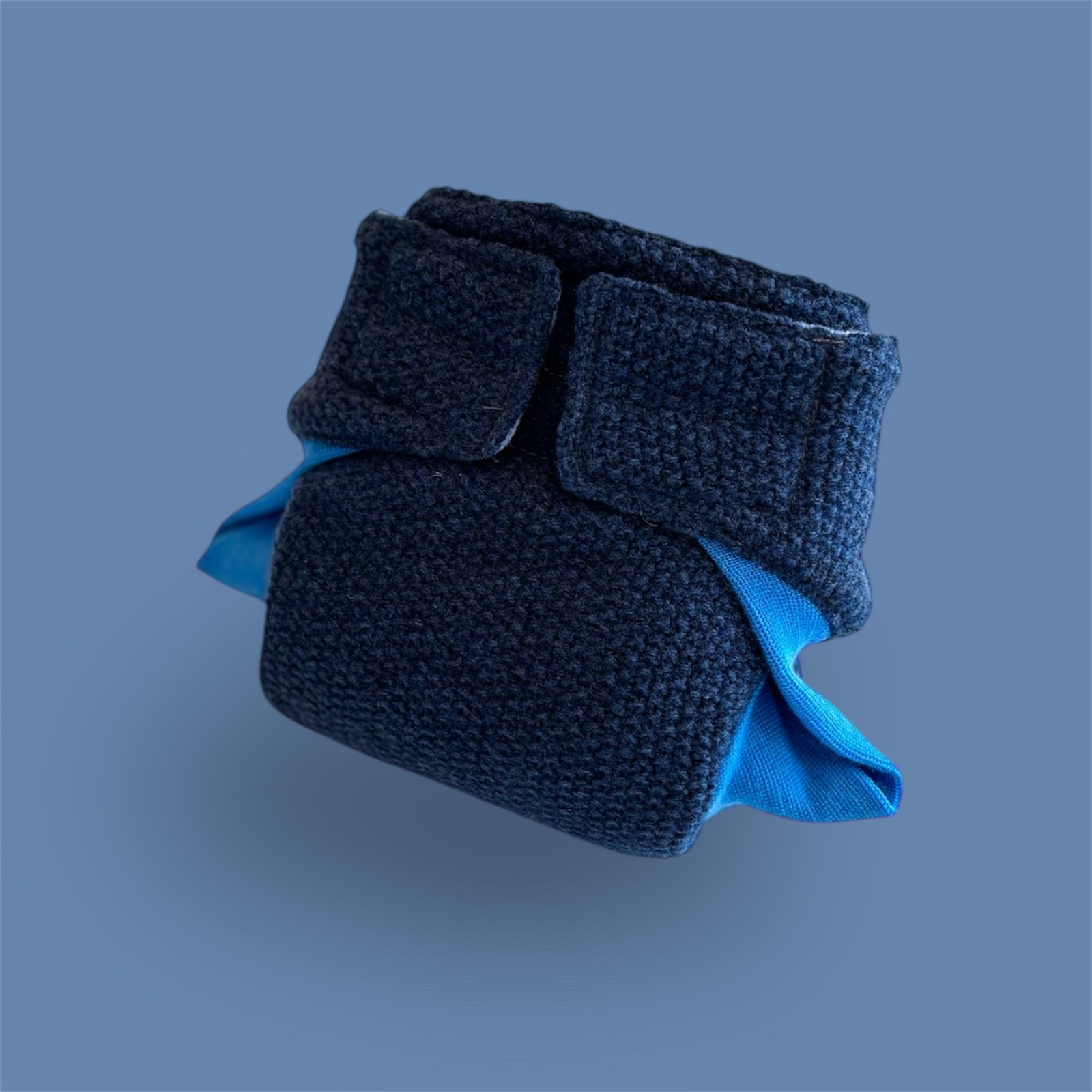 Diese WollfairWindel wird mit Klettverschluss um den Bauch geschlossen.