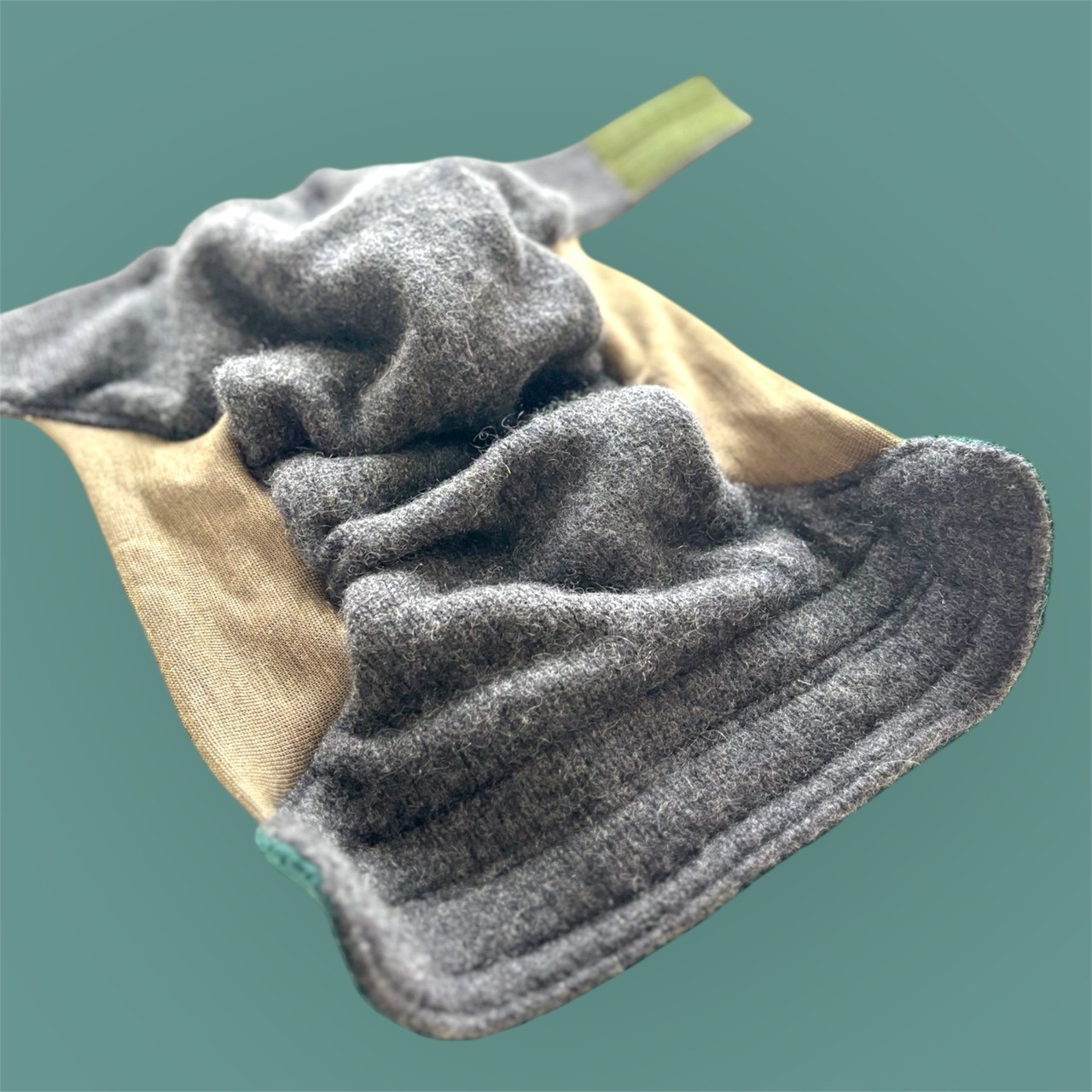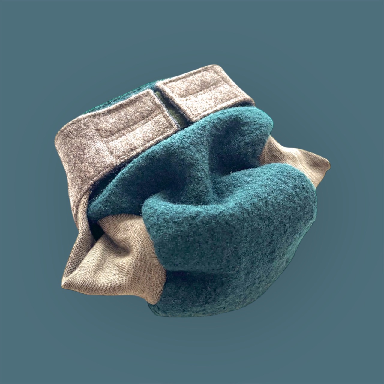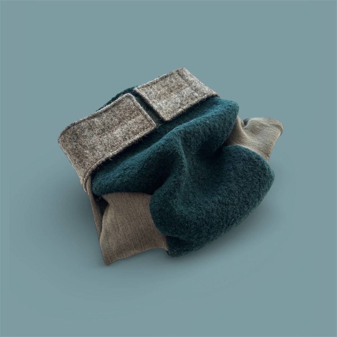 Laschen Außenstoff: 100% Schurwolle des Pommerschen Landschafes (aus Resten des Unternehmens „Nordwolle Rügen“ geschnitten)